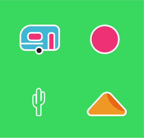 We Tranquilo branded campground sticker with desert landscape, colorful camper, and cactus illustration